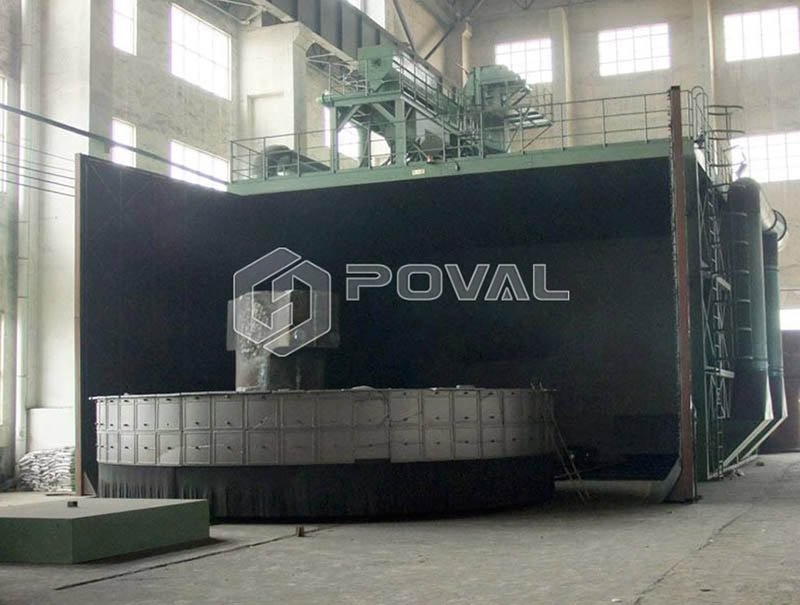 臺(tái)車(chē)式拋丸清理機(jī)是為了滿足特定工藝要求而設(shè)計(jì)的專(zhuān)用設(shè)備。本機(jī)適合于大中型鑄鐵件、鑄鋼件、鍛件及板焊件的拋丸清理。主要用于鑄件及其他鑄鐵件的清理,以去掉工件表面呈金屬本色,消除工件內(nèi)部應(yīng)力,提高工件抗疲勞性能,增加工件表面噴漆是的漆膜附著力,并最終打到提高工件表面及內(nèi)在質(zhì)量的目的。同時(shí)帶有噴丸機(jī)構(gòu)對(duì)工件進(jìn)行有目標(biāo)補(bǔ)充清理,達(dá)到完全清理的目的。